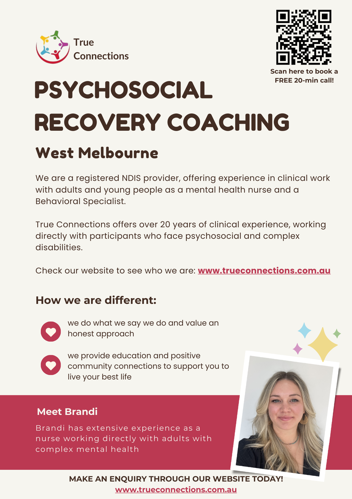 We’re excited to announce that we’ve onboarded Brandi, a skilled mental health nurse, to our Psychosocial Recovery Coaching team!